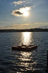 Keywords: raft cloud sun mountains sea trees lake swim mirroring landscape nature evening sky