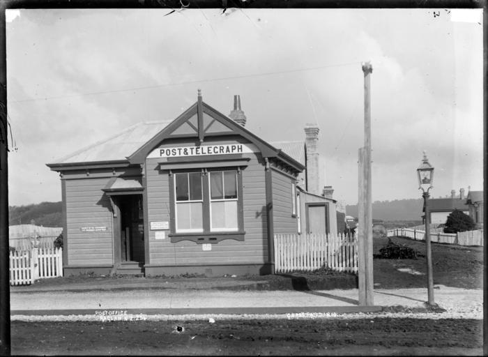 | Keywords: blackandwhite monochrome outdoor photo border black and white Raglan Post Office. A wooden building, with sign "Post & Telegraph" above the window. There is a street lamp on the right, and a sign to the left of the front door "Agency of the Government Life Insurance Department". Taken 1910 by 'G Bros', probably Gilmour Brothers of Raglan. Inscriptions: Inscribed - Photographer's title on negative -bottom left: Post Office. Raglan. N.Z. 254bottom right: G. BROS. PROTD 1.8.10 . Quantity: 1 b&w original negative(s). Physical Description: Dry plate glass negative 4.5 x 6.5 inches Gilmour Brothers (Firm). Raglan Post Office, 1910 - Photograph taken by Gilmour Brothers. Price, William Archer, 1866-1948 :Collection of post card negatives. Ref: 1/2-000382-G. Alexander Turnbull Library, Wellington, New Zealand. natlib.govt.nz/records/22813974 Raglan Post Office. A wooden building, with sign "Post & Telegraph" above the window. There is a street lamp on the right, and a sign to the left of the front door "Agency of the Government Life Insurance Department". Taken 1910 by 'G Bros', probably Gilmour Brothers of Raglan. Inscriptions: Inscribed - Photographer's title on negative -bottom left: Post Office. Raglan. N.Z. 254bottom right: G. BROS. PROTD 1.8.10 . Quantity: 1 b&w original negative(s). Physical Description: Dry plate glass negative 4.5 x 6.5 inches Gilmour Brothers (Firm). Raglan Post Office, 1910 - Photograph taken by Gilmour Brothers. Price, William Archer, 1866-1948 :Collection of post card negatives. Ref: 1/2-000382-G. Alexander Turnbull Library, Wellington, New Zealand. natlib.govt.nz/records/22813974 |