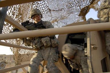 Keywords: Raider Bayonet Training Exercise DVIDS118502.jpg en Army Pfc Bob Ward assigned to 3rd Platoon Delta Company attached to Echo Company 4th Infantry Division participates in the Hummvee Egress Assistance Training as part of the Raider Bayonet training exercise at Forward Operating Base Falcon 2008-09-22 Petty Officer 2nd Class Joan Kretschmer https //www dvidshub net/image/118502 080922-N-+++++-101 2008-09-27 15 41 FOWARD OPERATING BASE FALCON IQ PD-USGov-Military-Navy Forward Operating Base Falcon Images from DoD uploaded by Fæ |