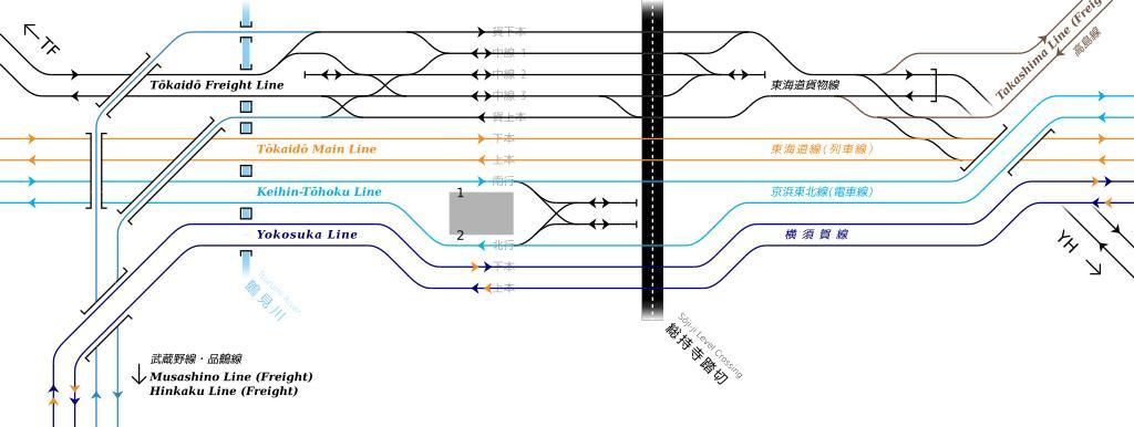 | Keywords: Rail Tracks map around JR-E Tsurumi Station Tokaido.svg Tōkaidō Main Line around JR-East Tsurumi Station in Tsurumi-ku Yokohama Japan Reference material Michitaka Tsuru Yoshihiro Meguro Introducing the major railway stations in Japan starting from Tokyo Station westwards No 1 RAILWAY JOURNAL CO LTD RAILWAY JOURNAL Tetsudō Journal Japanese Magazine Vol 40-11 No 481 2006-11 page 65 Masashi Takahashi Tokyo SOTOKANJŌSEN Junction DENKISHA KENKYUKAI THE RAILWAY PICTORIAL Tetsudō Pictorial Japanese Magazine Vol 58-9 No 808 2008-9 Page 47 Figure 1 横 市鶴見区にあるJR 日 鶴見駅周辺の 海道 線関 の鉄道配線略図(鶴見線分は 略)<br /> 参 文献: 鶴 目黒義浩 日 縦断各駅 車 京から西へ 1 鉄道ジャーナル社 鉄道ジャーナル 第40巻11号( 巻第481号) 2006年11 号 65頁 高橋政士 京外環状線ジャンクション 電気車研究会 鉄道ピクトリアル 巻第808号(第58巻第9号) 2008年9 号 47頁 図-1 凡例は駅配線図テンプレートを参照 Plan de voies Created with Text Editor Tawashi2006 created from icons in Category Rail_tracks_map_template 2010-02-14 Tawashi2006 with http //kiritachinoboru tripod com/pdv2svg_en html pdv2svg Tawashi2006 validSVG translation possible Tsurumi Station Rail track diagrams of JR East train stations |