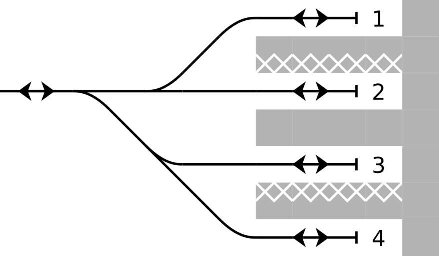 Keywords: Rail Tracks map Kintetsu Yoshino Station.svg Kintetsu Yoshino Station Yoshino Yoshino District Nara Pref Japan <br /> White crosshatch is arrival platform <br /> Reference material Ryozo KAWASHIMA Zenkoku Tetsudo Jijyo Daikenkyu - Osaka Nambu Wakayama ISBN 978-4-7942-0516-2 Soshisha Page 249 1993 å¥ˆè‰¯ç Œ å‰é‡Žéƒ¡ å‰é‡Žç”ºã«ã‚る近鉄å‰é‡Žé§… 構内é…線略図<br /> å‚è ƒæ–‡çŒ®ï¼šå· å³¶ä»¤ä¸‰ã 㠎全国鉄é“äº‹æƒ…å¤§ç ”ç©¶ - 大阪å—部・和æŒå±±ç¯‡ã ã ISBN 978-4-7942-0516-2ã è‰æ 社ã 1993ã 249é <br /> 凡例ã¯é§…é…線図テンプレートをå‚ç…§ Plan de voies Tawashi2006 created from icons in Category Rail_tracks_map_template 2009-05-26 Tawashi2006 with http //kiritachinoboru tripod com/pdv2svg_en html pdv2svg Tawashi2006 Rail track diagrams of Kintetsu Corporation train stations Yoshino Station Nara |