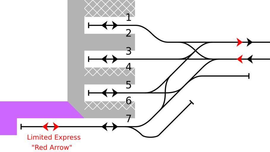 | Keywords: Rail Tracks map Seibu Ikebukuro Station.svg Rail tracks map Ikebukuro Station Seibu Ikebukuro Line in Toshima Tokyo Japan Legend n platform number White crosshatch arrival platform Purple platform for Limited Express only Reference material DENKISHA KENKYUKAI THE RAILWAY PICTORIAL Tetsudō Pictorial Japanese Magazine Vol 52-14 No 716 2002-04 Extra edition - 西武鉄道 Seibu Railway insert page at end http //www seibu-group co jp/railways/railway/ekimap/ikebukuro/index html Seibu Railway official homepage / Train Station information / Ikebukuro Station Japanese 京都豊島区にある西武鉄道池袋駅の鉄道配線略図 参 文献: 電気車研究会 鉄道ピクトリアル 第52巻14号( 巻第716号) 2002年4 臨時増刊号 特集 - 西武鉄道 巻 折込 西武鉄道 配線略図 (2001年12 15日現 ) http //www seibu-group co jp/railways/railway/ekimap/ikebukuro/index html 西武鉄道公式ホームページ 電車・駅のご案内 池袋駅 凡例は駅配線図テンプレートを参照 白線クロスハッチは降車専用ホーム 紫色は特 専用 数字は乗り場番号 Plan de voies Created with Text Editor Tawashi2006 created from icons in Category Rail_tracks_map_template 2011-02-24 Tawashi2006 with http //kiritachinoboru tripod com/pdv2svg_en html pdv2svg Tawashi2006 validSVG translation possible Ikebukuro Station Rail track diagrams of Seibu Railway train stations |