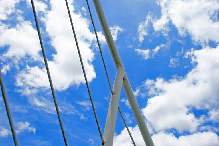 Keywords: railing of cruise vessel railing white restraint upper deck sky blue clouds