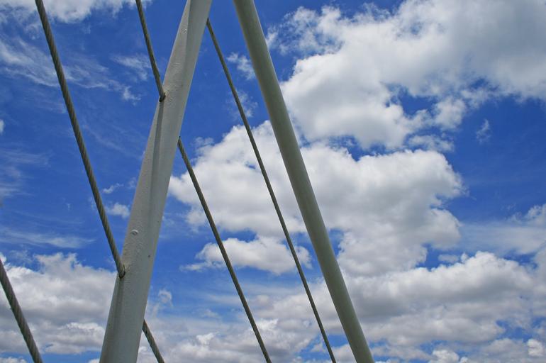 Keywords: railing of cruise vessel railing white restraint sky blue clouds