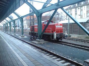 | Keywords: Raillion Shunting Engine At Darmstadt.jpg A shunting locomotive near the Darmstadt Hauptbahnhof in Darmstadt Germany Looking northeast self-photographed 2009-12 Uploader 49 8728497 8 6301282 Photos taken by Ingolfson Railion DB Class 294 608 Trains at Darmstadt Hauptbahnhof Metal columns Buttresses in Hesse Trusses Train station shelters in Germany Red locomotives December 2009 in Germany | ||||