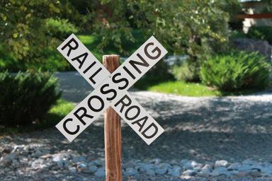Keywords: railroad crossing sign train railway warning locomotive safety caution railroad industry railroad tracks