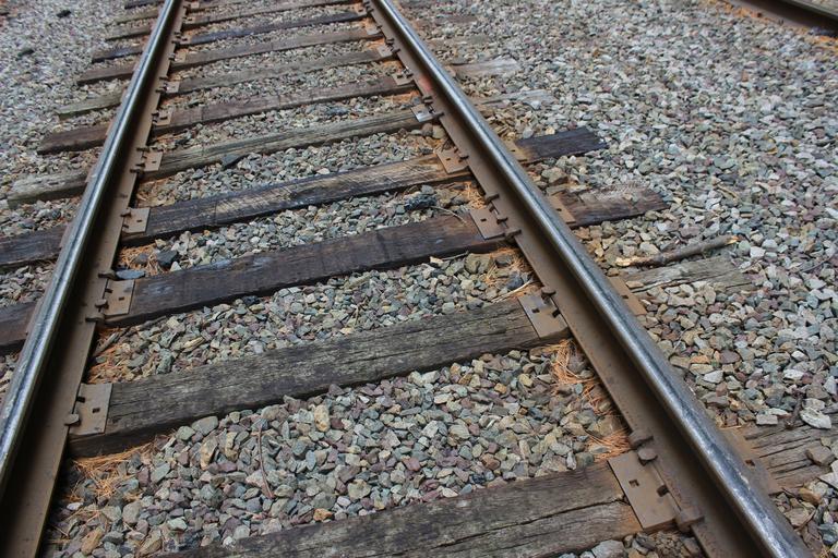 Keywords: railroad track railway train transportation industry metal freight locomotive transit trip motion journey industrial move gravel wood