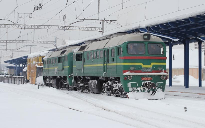 Keywords: diesel locomotive train Railway snow blower Vinnitsa railway station winter