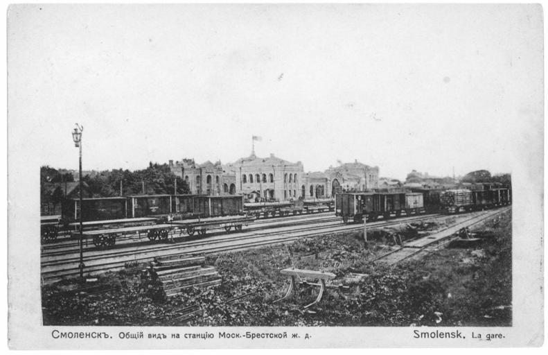 Keywords: Railway station "Smolensk".jpg en General view of the station Smolensk the Moscow-Brest railway ru Общий вид на станцию Смоленск осковско-Б естской железной до оги О игинальная отк ытка е установлены before 1917 года PD-RusEmpire 20th-century postcards of Russia Postcards of Smolensk |