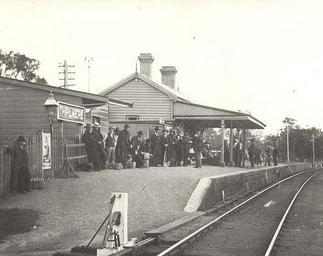 | Keywords: archives state records nsw staterecordsnsw newsouthwales blackandwhite railway station railwaystation people passengers thirlmere southern highlands southernhighlands geotagged geo:lat=-34.204553 geo:lat=34204553 geo:lon=150.571768 geo:lon=150571768 outdoor monochrome black and white Thirlmere Railway Station Dated: c. 31 December 1900 Digital ID: 17420_a014_a014000803 Rights: www.records.nsw.gov.au/about-us/rights-and-permissions We'd love to hear from you if you use our photos. Many other photos in our collection are available to view and browse on our website using Photo Investigator. Thirlmere Railway Station Dated: c. 31 December 1900 Digital ID: 17420_a014_a014000803 Rights: www.records.nsw.gov.au/about-us/rights-and-permissions We'd love to hear from you if you use our photos. Many other photos in our collection are available to view and browse on our website using Photo Investigator. |