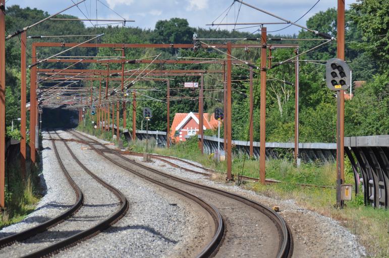 Keywords: railway track transportation rail railroad transport way line train tracks railroad tracks infrastructure outdoor electric signal denmark travel network system scandanavia overheads electrification