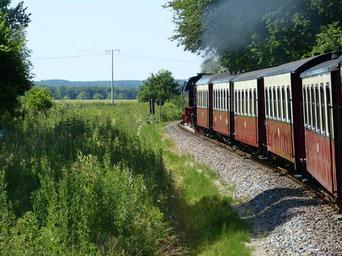 Keywords: railway train transport traffic loco steam locomotive molli web mecklenburg historically locomotive rail traffic doberan bad doberan steam railway station steam railway wagon field exit nostalgia