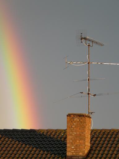Keywords: rainbow phenomenon rain sunshine refraction sky nature spectrum colorful natural phenomenon rainbow colors ray natural spectacle of course spectacular clouds half circle antenna roof house roof