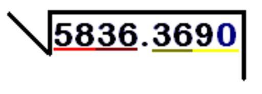 Keywords: Raiz paso 1.PNG Primer paso de la raíz cuadrada 2006-09-03 own assumed Alejandro24~commonswiki Square root
