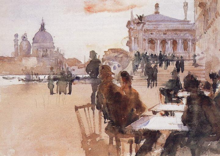 | Keywords: Ralph Curtis - Café on the Riva degli Schiavoni.jpg Artwork creator Ralph Curtis c 1880-82 Watercolor Private collection unknown accession number object history credit line Elizabeth Anne McCauley Gondola days PD-old-auto 1922 Ralph Curtis Watercolor paintings Paintings of Riva degli Schiavoni Paintings of Ponte della Paglia |