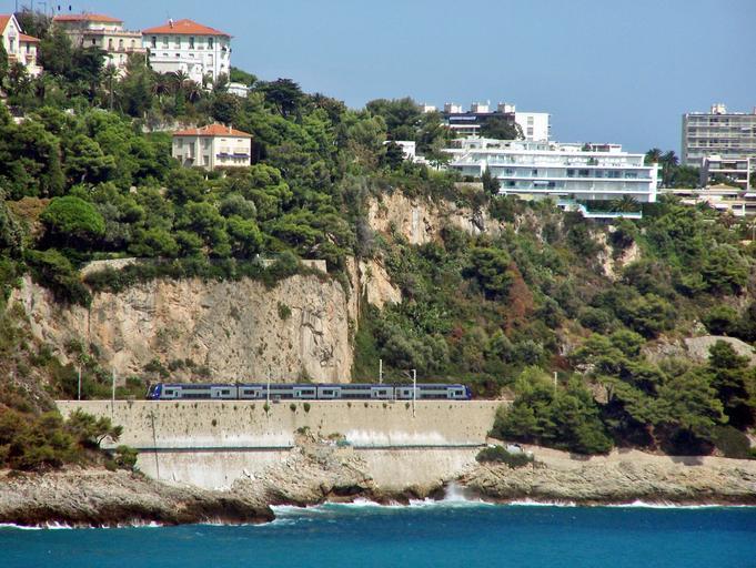 Keywords: Rame TER 2N à Roquebrune.JPG French regional train entering the city of Roquebrune-Cap-Martin in the department of Alpes-Maritimes south-east of the country fr Un TER entrant dans le village de Roquebrune-Cap-Martin dans le département des Alpes-Maritimes sud-est de la France own 2006-08-18 Florian Pépellin Public domain 43 45 19 59 N 7 26 58 83 E heading ENE SNCF Class Z 26500 Cap-Martin Rolling stock of TER Provence-Alpes-Côte d'Azur Ligne Marseille-Saint-Charles - Vintimille frontière |