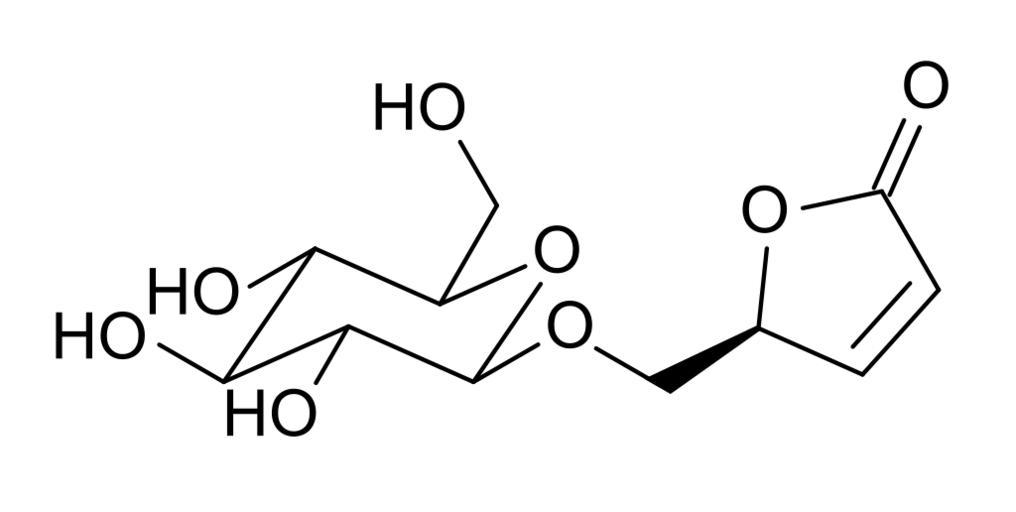 Keywords: Ranunculin skeletal.svg ranunculin own Anypodetos 2010-11-26 BKchem 001 -check Gamma-lactones Glucosides