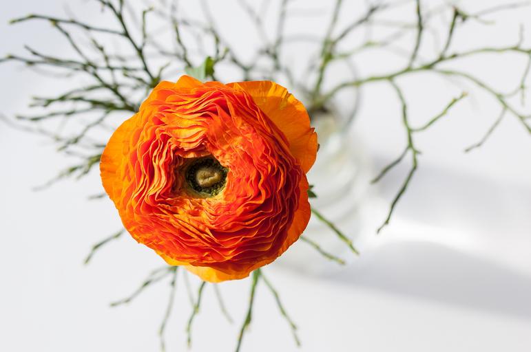 Keywords: ranunculus flower orange orange flower orange ranunkel blossom bloom orange blossom vase from above spring flower schnittblume spring petals close floral photography
