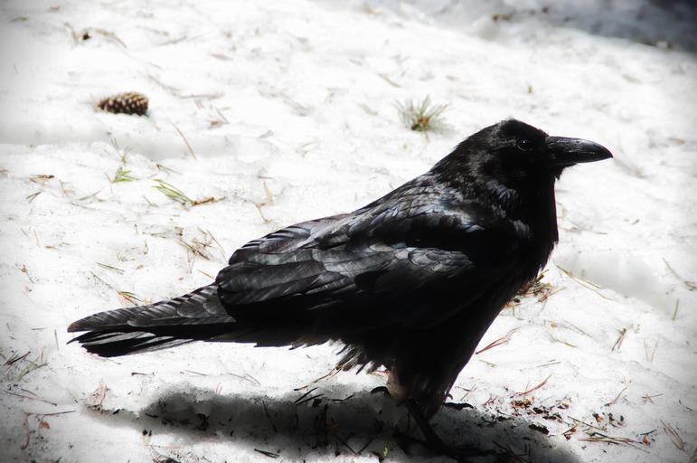 Keywords: raven bird crow snow winter black aves avian fauna avifauna