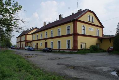 Keywords: Ražice nádraží.JPG en Ražice village in Písek district Czech Republic A northwest view of the train station cs Obec Ražice okres Písek Česká republika Nádraží pohled od severozápadu own Feťour 2009-05-01 Ražice train station Ražice