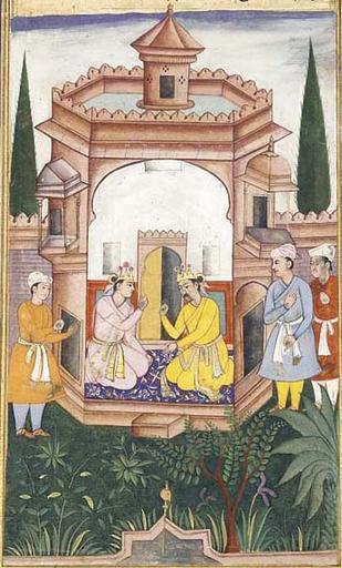 Keywords: Razmnamah.jpg YUDHISHTHIRA WITH BHISMA IN A PAVILION Ascribed to Fattu Mughal India 1598 From a manuscript of the Razmnama gouache heightened with gold on paper the two noblemen conversing in a pavilion with attendants waiting outside four lines of black naskh above slight oxidation laid down on another manuscript leaf inscribed below Fattu verso with text page Folio 11 5/8 x 6¾in 29 6 x 17 2cm ; miniature 7 1/8 x 4¼in 18 1 x 10 8cm 1598 gouache heightened with gold on paper Folio 11 5/8 x 6¾in 29 6 x 17 2cm ; miniature 7 1/8 x 4¼in 18 1 x 10 8cm The Philadelphia Free Library Philadelphia object history credit line four lines of black naskh above slight oxidation laid down on another manuscript leaf inscribed below Fattu verso with text page The Philadelphia Free Library has two other miniatures by Fattu from this manuscript He also worked on the Baburnama of 1597-8 in the National Museum of Art New Delhi accession number Razmnamah http //www columbia edu/itc/mealac/pritchett/00routesdata/bce_299_200/mahabharata/razmnamah/razmnamah html PD-old-100 Uploaded with UploadWizard Free Library of Philadelphia 16th-century Mughal miniatures 1598 paintings 1590s paintings from India Gouache paintings Bhishma Yudhisthira Razmnama |