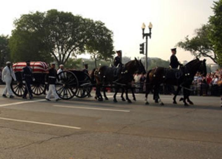 MAKE A MEME View Large Image ReaganCaissonTravelsDownConstitutionAve..jpg en The caisson with Reagan's body begins the journey down Constitution Ave to Capitol Hill Photo courtesy U S Navy http //www mdw army mil/reagan/General/photos/6_09_04/funeral_procession/...