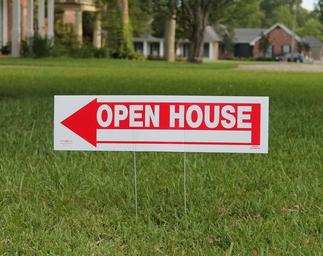 Keywords: real estate open house home property sign arrow direction lawn
