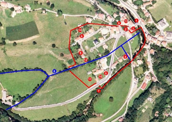 | Keywords: Recinto de la fabrica de canones de La Cavada.jpg <br> Fotografía aérea con el límite del antiguo recinto de la Real Fábrica de Artilleria de La Cavada Cantabria España 1 Puente 2 Portada de Carlos III 3 Edificios de la guardia y administrativo 4 Almacenes 5 Casa Redonda 6 Casas de operarios caballerizas 7 Retén de troncos y rampa 8 Canal 9 Puerta de Ceceñas 10 Huerta del Ministro 11 Huerta del Comandante 12 Huerta del Tesorero 13 Venta 14 Huerta de las casa de oficial contador y del cuartel Aerial photography with the limit of the old enclosure of the Real Factory of Artillery of La Cavada Cantabria Spain Cantabria Spain 1 Bridge 2 Cover of Carlos III 3 Buildings of the guard and administrative 4 Almacenes 5 Round House 6 Houses of workers and stables 7 Detent of trunks and incline 8 Channel 9 Door of Ceceñas 10 Minister's huerta 11 Commander's huerta 12 Treasurer's huerta 13 Store 14 Huerta of the houses of the official and of the barracks Composición propia 2006-07-08 Jesús Gómez La Cavada |
