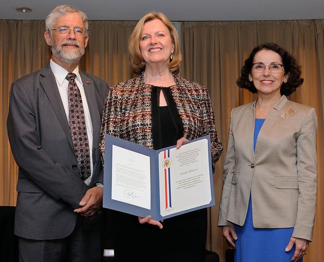 | Keywords: Recognizing outstanding mentors for their contributions to STEM education and the future workforce.jpg Washington D C Pictured above 2013 PAESMEM recipient Sandra Petersen professor and associate graduate dean Veterinary and Animal Science at the University of Massachusetts Amherst center with John P Holdren assistant to the President for science and technology and director of the White House Office of Science and Technology Policy left and NSF Director France A Córdova right Petersen is recognized as the director of a consortium of research colleges and minority-serving institutions that has tripled enrollments of underrepresented groups in STEM fields All are serving from http //myvetcareer com/ vet tech salary 2015-11-12 https //www flickr com/photos/nsf_beta/22958305132/ National Science Foundation other versions National Science Foundation https //flickr com/photos/37157086 N02/22958305132 2016-05-08 04 51 04 United States Government Work PD-USGov Presidential Award for Excellence in Science Mathematics and Engineering Mentoring France Cordova John Holdren |