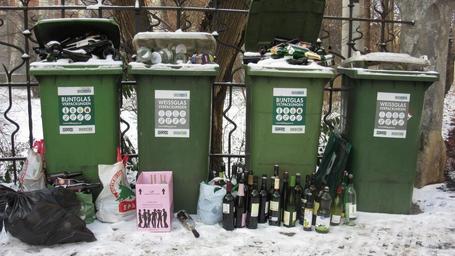 Keywords: recycled glass garbage bottles recycling waste disposal glass container alcohol new year's eve day after tomorrow alcohol abuse excess full sources over