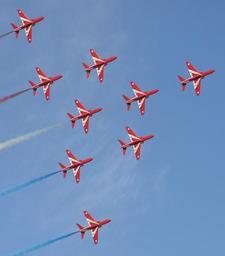 Keywords: red arrows aircraft aviation plane flying display raf team jet smoke aeroplane formation show speed airshow wings aerobatic fast red sky flight fly air airplane