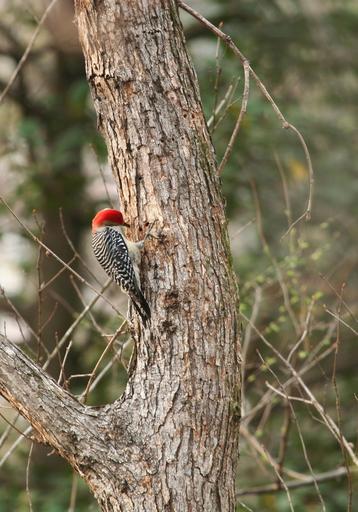 Keywords: red bellied woodpecker bird wildlife nature red black forest beak tree trunk wilderness portrait outdoors