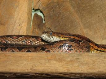 Keywords: Red Chicken Snake 001.jpg Red Chicken Snake Corn Snake Pantherophis guttatus own 2007-01-12 Ltshears Public Domain Pantherophis guttatus in Louisville Zoo Pantherophis guttatus