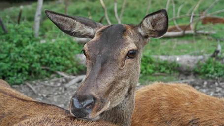 Keywords: red deer flock hirsch animal world animals ricke nature in the free antler mammals forest meadow green antler carrier paarhufer wild animal