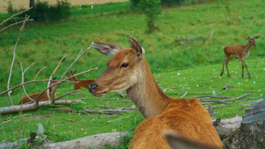 Keywords: red deer flock hirsch animal world animals ricke nature in the free antler mammals forest meadow green antler carrier paarhufer wild animal