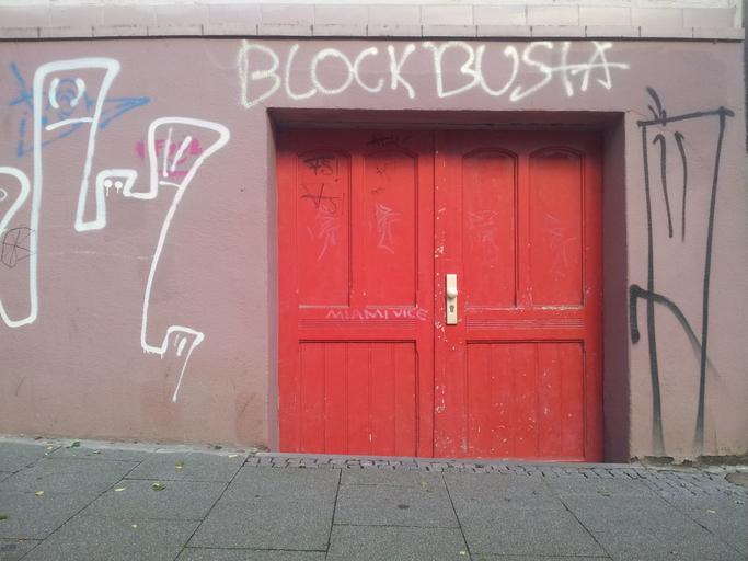 Keywords: red door input wood red door building graffiti old wall architecture stone walls district road wiesbaden cityscape