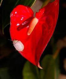 Keywords: red flower bloom shiny insect bug white contrast bright australia