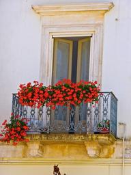 Keywords: red flowers balcony floral decoration blossom color petals blooming fresh spring decorative bouquet