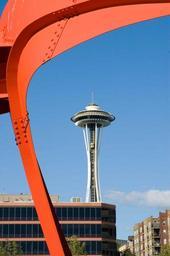 Keywords: red frame eagle red sculpture space needle seattle seattle art museum olympic sculpture park
