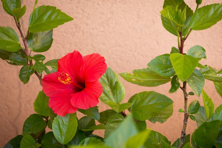 Keywords: red hibiscus plant leaves bright red hibiscus