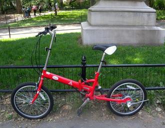 Keywords: Red iPed folder jeh.jpg en Red folding bike in Manhattan Upper West Side 2011-05-29 own Jim henderson cc-zero Uploaded with UploadWizard Folding bicycles