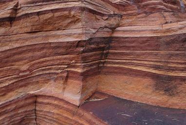 Keywords: red sandstone layered eroded rocks geology badami sandstone india