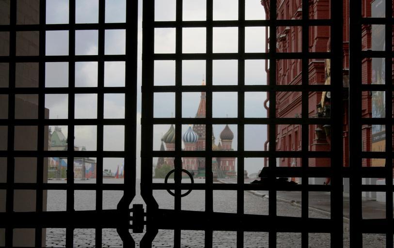 Keywords: red square st basil's cathedral historic gates locked no entrance forbiddin to enter black metal grid impenetrable