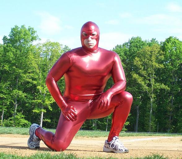 Keywords: Red zentai.jpg en Male crouching in red Zentai suit 2006-08-12 own Zencat2006 Information field wiki Zentai Crouching men