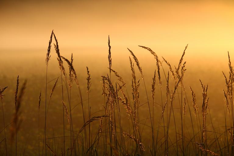 Keywords: reed grass fog sunrise grasses light morgenstimmung mood meadow
