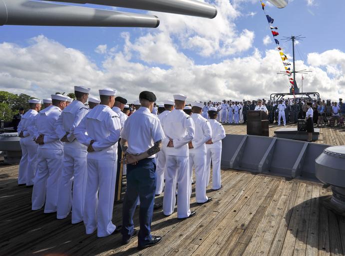 Keywords: Reenlistment ceremony 140704-N-WF272-029.jpg en U S service members prepare to reenlist during a reenlistment ceremony conducted by U S Navy Rear Adm Rick Williams the commander of Navy Region Hawaii and Naval Surface Group Middle Pacific on the Battleship Missouri Memorial on Ford Island at Joint Base Pearl Harbor-Hickam in Pearl Harbor Hawaii July 4 2014 More than 20 service members took the oath of enlistment on Independence Day commemorating their past and future service U S Navy photo by Mass Communication Specialist 2nd Class Diana Quinlan/Released 2014-07-04 Petty Officer 3rd Class Diana Quinlan https //www dvidshub net/image/1583003 140704-N-WF272-029 2014-09-29 17 08 PEARL HARBOR HI US PD-USGov-Military-Navy 2014 in Pearl Harbor People at Joint Base Pearl Harbor-Hickam Battleship Missouri Memorial Images from DoD uploaded by Fæ |