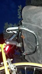 Keywords: marco-bicycle marcobicycle rebuild bike bicycles canvas yellow-bikes yellowbikes panniers bags canvas-bags canvasbags I added these longer bar-ends curved inward to act like a rack for the seat bag, or other things, if not using the bag. It works beautifully and now the rear bag can be opened and the contents easily accessed instead of fighting the downward pull of gravity and the full bag. The bar-ends can be tilted up or down to adjust the bag's height or angle. Works pretty good. It looks heavy, and IS heavier than a $59 dollar seat bag support, but this was free and not really that heavy. I added these longer bar-ends curved inward to act like a rack for the seat bag, or other things, if not using the bag. It works beautifully and now the rear bag can be opened and the contents easily accessed instead of fighting the downward pull of gravity and the full bag. The bar-ends can be tilted up or down to adjust the bag's height or angle. Works pretty good. It looks heavy, and IS heavier than a $59 dollar seat bag support, but this was free and not really that heavy.