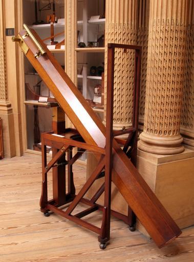 Keywords: Reflecting telescope, after Isaac Newton, photo-2.JPG Reflecting telescope after Isaac Newton by William Herschel slough 1790 Example of Herschel's most popular telescope Octagonal barrel suppoted by aningeniously constructed framework the whole made in mahongany The image is created by a system of metal specula and is seen trhrough the side ocular own 2011-12-23 13 45 16 AlfvanBeem Cc-zero Instruments in the Teylers Museum Culture photographed by Alf van Beem Herschel telescopes |