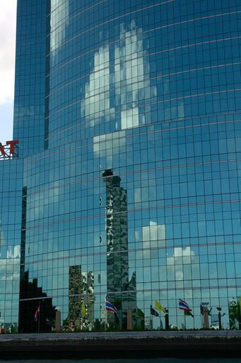 Keywords: reflection window sky outside clouds reflections skyscraper office skyscrapers buildings cites glass city business building blue cityscape architecture