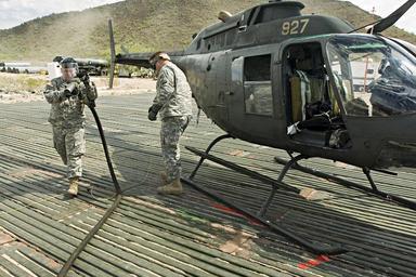 | Keywords: Refuelers Keep Southwest Border Aviation in the Sky DVIDS57228.jpg en Finished refueling the OH-58 Kiowa Sep 8 Spc John Mix left of Hastings Mich with the Mich Army National Guard's Company E 3-238th Aviation Regiment and Alaska Army National Guard Warrant Officer Candidate Steven Ernst from Anchorage Alaska with Company E 1-207th Aviation Regiment both attached to Operation Jump Start-Arizona Task Force Tucson head back to finish work refueling tank pump units at the Forward Ammunition and Refueling Point at the U S Customs and Border Protection Border Patrol station in Ajo Ariz 2007-09-07 https //www dvidshub net/image/57228 57228 2007-09-14 15 20 AJO AZ US PD-USGov OH-58 Kiowa Alaska Army National Guard Images from DoD uploaded by Fæ |